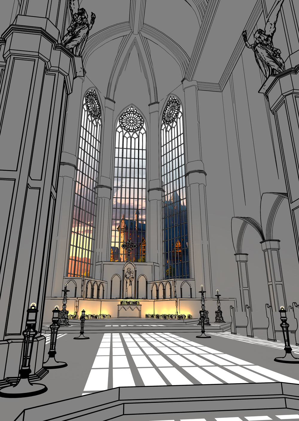 Step into a sacred realm where history, faith, and serenity converge in a breathtaking cathedral scene. This illuminated piece brings to life the awe-inspiring architecture of a grand cathedral, with towering columns and majestic arches leading your gaze toward the radiant stained glass windows.
